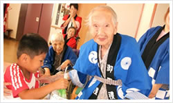 あかり福祉会では、世代を超えた交流を通して、子ども達が今まで知らなかった知識をお年寄りから教わり、お年寄りも子ども達から笑顔と元気を貰っています。普段の生活ではなかなか出来ない体験を積極的に行っている施設は、兵庫県内ではあかり福祉会が先駆け。日々の生活のお手伝いだけでなく、生活の中に新しい楽しさを見つけるお手伝いも出来る様、取り組んでいます。