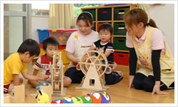 また、保護者の方が抱える不安や悩みを打ち明けることが出来る育児相談を設けており、保育だけでなく、子育てのお手伝いも出来るよう取り組んでいます。隣接するデイサービスの方々との交流会は、子ども達の楽しみのひとつ。保護者の方も、子ども達も安心して楽しく毎日を過ごせる環境作りを目指しています。