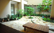 生活者様が我が家で過ごすのと同じくらいくつろいで過ごせる広々とした施設です。光の差し込む中庭も、生活者様の落ち着ける空間となっています。