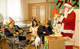 クリスマス大会では、練習を重ねた職員が歌って踊ってショーを盛り上げます。皆様に喜んでいただくためにプレゼント選びにも熱が入ります。 |